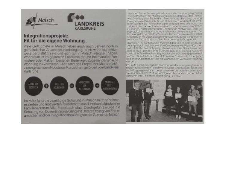 Beitrag im Mitteilungsblatt Malsch zur Mieterqualifizierung März 2022
