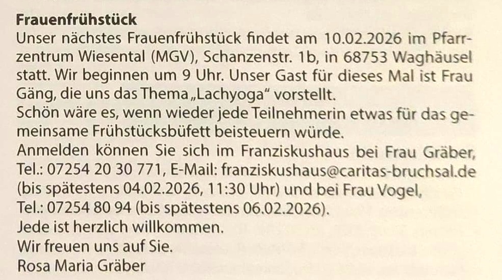 Lachyoga beim Frauen Frühstück in Wiesental im Februar 2026