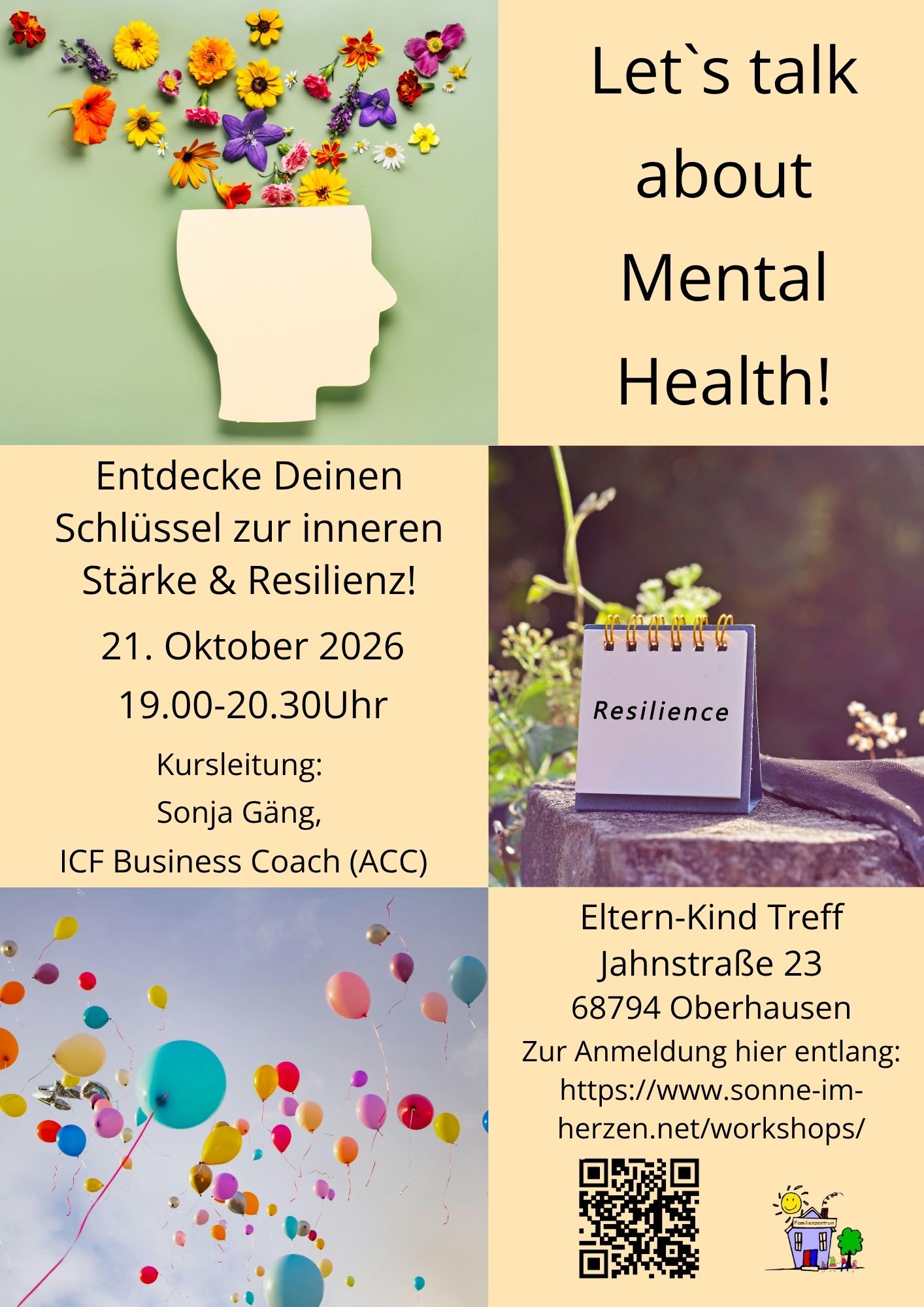 In Zusammenarbeit mit dem Eltern-Kind Treff e.V. in 68794 Oberhausen-Rheinhausen biete ich zum zweiten Mal einen Workshop zum Thema Mental Health an.